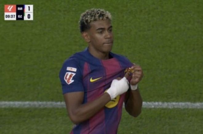 11月3日,联赛第11天,巴萨作客对阵埃尔切。本赛季备受争议的亚马尔首发并取得进球。值得注意的是,亚马尔放弃了此前的加冕庆祝活动,转而表达了对巴塞罗那的热爱。这一举动被视为他转变的象征。亚马尔最近收到不少负面消息。经典赛之前,他的大嘴引起了不少争议,他公开嘲讽皇马,让他成为众矢之的。在国家德比失利后,亚马尔前往米兰参加聚会,并卷入了作弊丑闻。两天前,亚马尔与阿根廷女友分手。两人只交往了两个月。虽然他否认两人因出轨而分手,但外界普遍认为两件事之间存在某种联系。球迷们希望亚马尔不要太迷恋女性,能够进入足球界。今天一早,Y阿迈勒曾效力于巴塞罗那队。第9分钟,对手传球失误。巴尔多断球后向前推进,斜传过身后的亚马尔。亚马尔禁区内急停,摆脱防守球员,左脚射门破门远角。 1-0,巴塞罗那领先。进球后,亚马尔一改本赛季的“加冕”庆祝方式,用嘴咬住胸前的巴萨队徽,与球迷互动。在经历了诸多争议之后,亚马尔似乎将注意力集中在足球上,从而表达了他对巴塞罗那的热爱。本场比赛巴塞罗那最终3-1击败埃尔切,积分榜上仍落后皇马5分。亚马尔出场88分钟,射门4次,射门1次,过人4中2,送出2次关键传球,评分为7.5分。亚马尔本赛季的表现有所放缓,但仍然在九场比赛中打进了九个进球(四个进球,五个助攻)。情绪自由、专注于足球的亚马尔将重返球场架子。