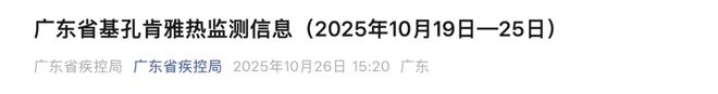 今天下午(26日),广东省疾控局发布广东省10月19日至25日基孔肯雅热监测信息。2025年10月19日凌晨0时至2025年10月25日24时,全省新增本土基孔肯雅热病例868例,无重症病例和死亡病例。感染病例分布如下:江门市199例,佛山市130例,广州市124例,深圳市102例,汕头市43例,珠海市、肇庆市、东莞市各33例,潮州市32例,汕头市30例,揭阳市20例,揭阳市20例,19例。韶关市、湛江市、清远市各16例,其中阳江市12例,惠州市11例,河源市6例,梅州市5例,汕尾市、云浮市2例。康明 广东省疾病预防控制中心传染病研究所所长、传染病高级专家省疾控中心注意到,近期全省基孔肯雅热疫情呈波动趋缓态势,江门市于10月25日解除突发公共卫生事件Ⅲ级响应。目前,我省仍处于蚊虫活跃季节。基孔肯雅热进一步蔓延风险依然存在,防控工作不能放松。康敏提醒,人们外出要注意个人防护,尽量避免前往疫情高发地区。如果在户外,穿浅色长袖裤,并在裸露皮肤上涂抹“驱蚊剂”,防止叮咬。如果出现发烧、关节疼痛或皮疹等症状,请尽快就医。携带基孔肯雅热的伊蚊更喜欢在小而干净的水体中繁殖。通过翻转罐子和瓶子来清除积水,特别是清洁各种容器中的积水,对于控制传播至关重要的传染病。基孔肯雅热可以通过“净化积水、杀死成虫和防止叮咬”来预防。在此,我们呼吁广大群众积极响应省委、省政府号召,开展爱国卫生运动,共同参与防蚊灭蚊活动,主动挂蚊帐、安装纱门、净化积水、清理垃圾,根据实际情况点燃蚊香,外出时张贴蚊香。 、消灭成蚊。积极开展灭蚊活动和灭蚊“1130”。这意味着您可以在旅行后一分钟清除积水。每周清洁一次,每天检查孳生区3分钟,共同打造无蚊场所,构筑群防群治的坚强防线,建设美丽健康的共享家园。来源:南方都市报* 医疗Community 致力于发布专业、可靠的内容,但不保证内容的准确性。如果您希望将这些信息作为聘用或决策的依据,请与相关方另行确认。